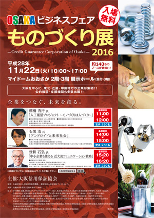 2016年11月22日にマイドームおおさかで開催されるOSAKAビジネスフェアものづくり展に出展します。